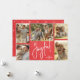 Les cartes de fin de année de Noël multiphoto présentent vos noms et le mot Joyful en lettres chic sur un arrière - plan rouge. Il vous suffit de télécharger vos photos de famille préférées et d'ajouter votre personnalisation de famille au dos. Sélectionnez Matte pour le papier le plus lourd et High Definition pour une meilleure qualité de photo.