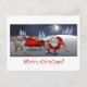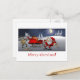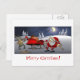 Carte parfaite pour les salutations de fin de Noël ou les cadeaux. Un dessin de Père Noël et Rudolph réparant leur traîneau cassé.
