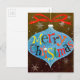 Cette belle carte présente une illustration vintage d'un ornement d'arbre de Noël avec les mots Joyeux Noël dessinés dessus. C'est la carte Yuletide parfaite pour vos amis, votre famille ou vous-même !