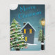 Noël Salutations avec arbres, neige, maison et lampadaire