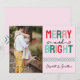 Joyeux et brillant ! Carte de vacances festive aux tons rose et vert. Modèle photo via Pixabay sous licence CC0 et doit être remplacé par votre propre photo.