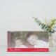 Utilisez une longue photo horizontale - ou une photo panoramique pour cette carte de Noël. Le design minimal comprend une barre rouge avec un script blanc saluant. Ajoutez la signature de la famille et les noms de famille ou saluez-vous en bas.