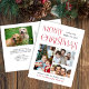 Elégante carte postale de vacances avec "Joyeux Noël" écrit dans la typographie rouge vintage, "Bonne nouvelle année" et un accueil dans la typographie rouge moderne, trois de vos photos préférées et votre nom. Au verso, ajoutez une 4ème photo et personnalisez votre message saisonnier à votre famille et à vos amis.