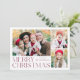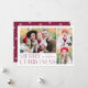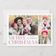 Carte de vacances simple et élégante avec un collage photo 3 sur le devant avec "Joyeux Noël" affiché en lettrage moderne vin. Personnalisez l'avant de la carte en ajoutant vos photos et votre nom. La carte inverse pour afficher la quatrième photo avec un motif de flocon blanc. La carte de vacances multi-photo est parfaite pour afficher toutes vos photos de famille préférées !