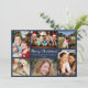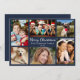 Carte de vacances bleu foncé simple et moderne avec "Joyeux Noël" présentée dans un élégant script blanc, un collage photo de 6 de vos personnes préférées et des moments de la dernière année et de votre nom de famille et de l'année.