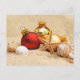 Une plage de sable avec des ornements de Noël représentant des vacances chaudes. Parfait pour votre escapade ou votre emplacement par temps chaud! Souhaitez à quelqu'un un Joyeux Noël de l'autre côté des miles - totalement personnalisable pour vous de personnaliser comme vous voulez!