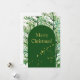 Aquarelle Peinte à la main, support mixte. Carte de vacances de Noël de qualité pour vous de customiser avec votre message spécial de vacances. La combinaison de teintes vertes dans les arbres et de neige dorée crée un contraste saisissant qui évoque un sentiment d'enchantement et de beauté.