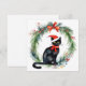 Cartes Pour Fêtes Annuelles Joyeux Noël aquarelle Chat noir et couronne