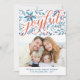 Joyeuse et joyeuse aquarelle peinte à la main feuillage d'hiver carte photo avec lettrage de script, branches bleues et baies rouges.