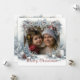 Joli cadre de pin et de poinsettia avec des pommes de pin, des bougies et de la neige réalisé dans des aquarelles douces ont été utilisés pour créer cette carte de cadre photo de vacances.