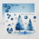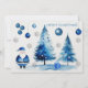 Cartes Pour Fêtes Annuelles Joyeux Noël Argent & Bleu Japandi Aquarelle