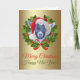 Belle peinture de cet adorable bébé de chèvre pygmée - Elle porte un chapeau de Père Noël entouré d'une couronne de Noël festive sur un arrière - plan d'or qui peut facilement être enlevé pour révéler un arrière - plan blanc si vous le souhaitez - dans une ferme de Noël entourée d'une même couronne de Noël et personnalisable à l'intérieur - Cartes de Noël pour les amateurs de chèvre à envoyer comme une carte de Noël unique - © Oeuvres originales originales YerGoat.com Madame de la chèvre