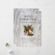 Carte de vacances Watercolor avec une cloche de Noël contre un arrière - plan en bois rustique décoré de flocons de neige. Personnalisez facilement cette carte de vacances avec votre nom de famille et votre texte.
