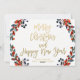 Texte écrit à la main avec les mots "Joyeux Noël" sur un arrière - plan d'or aux baies rouges. Joyeux Noël Gold 3 Photo Collage Carte de vacances par Elke Clarke © Le dos de la carte a un script de typographie or sur un arrière - plan blanc avec un design d'aquarelle en couronne de vacances.