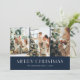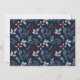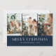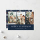 Photo botanique bleue et rouge personnalisée Joyeuse carte de Noël avec un collage photo sur un arrière - plan bleu foncé. Un motif botanique bleu, rouge et blanc à l'arrière. Personnalisez facilement cette carte de Noël élégante avec vos photos et texte.