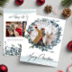 Envoyez des salutations d'hiver élégantes avec cette carte de vacances Joyeux Noël bleu couronne photo. Le devant présente votre photo préférée encadrée d'une couronne d'aquarelle de feuilles bleus et verdoyants, avec "Joyeux Noël" en écriture moderne en dessous. Le dos comporte deux espaces photo supplémentaires et votre message de vacances personnalisé, accentué de détails botaniques assortis. Une belle carte à plat pour partager joie et chaleur avec famille et amis cette saison.