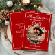 Joyeux Noël Bonne Année Carte de Noël Coquette Nœud Photo présente un design simple avec votre photo préférée avec le texte superposé "Joyeux Noël et une bonne année" dans une typographie de calligraphie moderne accentuée d'un nœud blanc sur fond rouge. Personnalisez vos noms ou texte personnalisé ci-dessous et votre message personnalisé au verso. Parfait pour la famille et les amis pour célébrer Noël et les fêtes. Conçu par ©2025 Evco Studio www.zazzle.com/store/evcostudio