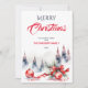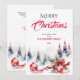 Joyeux Noël classique traditionnel boules rouges et ruban rouge sapins enneigés modèle aquarelle invitation téléchargement instantané