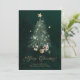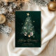 Envoyez vos vœux chaleureux pour les fêtes avec cette carte de Noël élégante représentant un sapin illustré de manière magnifique, orné d'étoiles dorées et entouré de cadeaux. L'écriture dorée scintillante «Joyeux Noël» ajoute une touche de luxe et de charme festif — parfait pour les amis, la famille ou les clients.