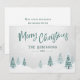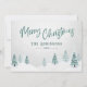 Cartes de vacances rustiques avec "Joyeux Noël" dans un style manuscrit avec votre nom ou nom de famille personnalisé et l'année, le tout en vert pin dans la typographie vintage. Une belle vue pittoresque sur les arbres et la neige hivernale dans l'aquarelle d'art souligne l'avant de la carte. Le verso de la carte contient de l'espace texte pour votre message de vacances personnel ou peut être laissé vide pour que vous en écrivez un à la main si nécessaire. Disponible en stock de carte imprimé de haute qualité pour l'envoi standard ou un format numérique téléchargeable pour l'envoi rapide et facile par SMS, email ou même auto-impression.