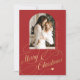 Elégant style Joyeux Noël faux or classique calligraphie script de famille photo carte de vacances rouge avec votre texte personnalisé sur les deux côtés. ++++++++++ VEUILLEZ NOTER que la couleur arrière - plan est modifiable. Vous pouvez le modifier après avoir sélectionné l'option PERSONNALISER sous le menu PERSONNALISER IT. Si vous n'êtes pas à l'aise de le modifier, demandez de l'aide à Zazzle Live Design Service ou au concepteur.