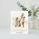 Envoyez des souhaits chaleureux avec ce carte photo de vacances Joyeux Noël avec une touche d'or et un design de script de calligraphie élégant. La disposition simple et minimaliste associée à une typographie élégante crée un look intemporel, tandis que l'effet photo moderne et les accents subtils brossés ajoutent une finition chic. Parfait pour les familles qui veulent une façon sophistiquée mais personnelle de partager leurs salutations de vacances.