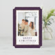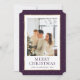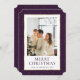 Elégante carte de Noël Joyeuse violet et or présentant de petites étoiles. Personnalisez facilement cette carte de vacances élégante avec votre photo et votre texte.