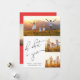 Carte simple et élégante de Noël et Nouvel An. "Oh quelle année" est écrit dans un script tendance et vous pouvez personnaliser avec trois photos, un vœu saisonnier et le nom de votre famille et l'année. Au verso, vous pouvez ajouter une photographie supplémentaire, personnaliser un autre vœu de fête et ajouter les prénoms de votre famille en guise de signature, le tout en typographie blanche sur un fond rouge saisonnier atténué.
