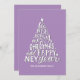 "Nous vous souhaitons un Joyeux Noël et une Bonne Année" carte en lettres violettes.
