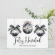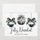 Envoyez vos vœux de vacances chaleureux avec cette élégante carte de Noël plate, dotée d'un design minimaliste sur le devant avec trois ornements à l'aquarelle noir et blanc, rehaussés de détails de verdure persistante et de rubans doux. "Feliz Navidad" est écrit en typographie script gracieuse, avec le nom de votre famille affiché en dessous dans une police serif classique pour une touche personnalisée. Vous pouvez également modifier la salutation pour l'adapter à votre style.