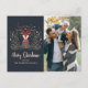 Belles cartes postales personnalisées et festives, illustrant une jolie illustration d'un cerf de fête dans un chandail cosy. Personnalisez avec votre photo et votre message de famille préférés.