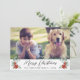 Joyeuse carte de vacances photo de Noël avec votre photo, "Joyeux Noël" dans un script contemporain, votre nom de famille dans la typographie moderne simple et bouquets d'aquarelle de fleurs poinsettia et la verdure d'hiver. Ajoutez 3 photos supplémentaires et vos prénoms au dos.