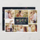 Elegant Simple Christmas Greeting Card Features 6 of Your Personal Photos, and Joyeux NOEL Typography Text with Poinsettia Flowers and String Lights.