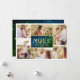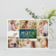 Elegant Simple Christmas Greeting Card Features 6 of Your Personal Photos, and Joyeux NOEL Typography Text with Poinsettia Flowers and String Lights.