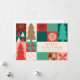 Cette création combine des formes géométriques et des symboles de fêtes comme les arbres et les flocons de neige dans des couleurs vives. Parfait pour envoyer des vœux de Noël modernes, il capture l'esprit de la saison avec une touche audacieuse et artistique.