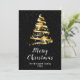 Cette carte de vacances élégante et chic peut être personnalisée avec votre nom de famille. Le design comprend un arbre de Noël en or et en ruban noir avec des cadeaux. Le texte combine écriture manuscrite et polices sans serif modernes pour un look élégant et sophistiqué. La neige tombante, les flocons de neige et les étincelles donnent une touche festive et magique.