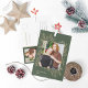 Diffusez la joie de Noël avec cette éblouissante carte postale feuille en or cadre photo de famille. Customisez-le avec vos propres photos des deux côtés et faites-le un cadeau personnel pour vos proches. Personnalisez votre salutation, année, nom(s) et signature de famille.