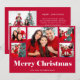 Cette simple et élégante carte de vacances multi-photos dit "Joyeux Noël" en typographie blanche moderne sur fond rouge festif, avec une grille de cinq photos sur le devant de la carte. Le dos contient deux autres photos, ainsi qu'un espace pour ajouter votre propre message personnel.