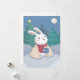 Une jolie illustration d'un lapin avec une couverture devant les arbres décorés