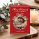 Joyeux Noël Joyeux Nouvel An Coquette Bow Photo Carte de Fête Noël offre un design simple avec votre photo préférée avec le texte superposé "Joyeux Noël et une bonne année" dans la typographie de script de calligraphie moderne accentuée d'un arc blanc sur un arrière - plan rouge. Personnalisez vos noms ou texte personnalisé ci-dessous et votre message personnalisé au verso. Parfait pour les familles et les amis pour célébrer Noël et les fêtes. Conçu par ©2025 Evco Studio www.zazzle.com/store/evcostudio