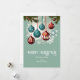 Joyeux Noël carte de voeux vert clair turquoise arrière - plan avec baubles turquoise et rouge et flocons de neige flocons de style rétro moyen siècle modèle invitation instantanée télécharger