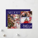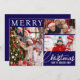 Cette saison, passez les fêtes de fin d'année avec cette carte de Noël personnalisée, moderne, bleue et blanche, avec trois de vos photos de famille chères sur le devant. Orné du mot "MERRY" en haut et de "Noël" en écriture classique en bas à côté de votre nom de famille. Sur le dos, partagez un message de Noël chaleureux et modifiable, parfaitement adapté à l'express de vos souhaits de vacances uniques. Ajoutez vos prénoms sous le message pour ajouter une touche personnelle, créant un souvenir que les amis et la famille chériront. Cette carte est le parfait mélange de tradition et de personnalisation, ce qui en fait un moyen inoubliable de répandre la joie des vacances.