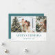 Photo bleu moderne Joyeuse carte de Noël avec deux photos à l'avant et la chute de neige sur un arrière - plan bleu à l'arrière. Personnalisez facilement cette carte de vacances photo avec vos photos, le nom de famille et l'année. Plus d'options de couleur disponibles, ou customisez cette carte avec votre couleur préférée à l'aide de l'outil de conception.