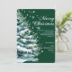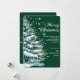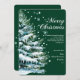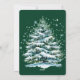 Une belle aquarelle, un arbre à feuillage persistant enneigé, glacé d'aqua et turquoise et entouré de flocons de neige volants couvre un côté de cette carte de vacances vert de forêt profonde. "Joyeux Noël" dans un script élégant surplombe la carte de voeux, suivi d'un accueil saisonnier personnalisé. "Meilleurs voeux de" et votre nom de famille personnalisé et date dans une jolie police serif. Tout le texte est en blanc pur pour correspondre à la neige sur les branches du joli aquarelle. L'arbre, en pleine gloire, centre la carte qui est aussi dans le vert de la forêt profonde. Chaque ligne et mot peut être édité pour votre salutation de vacances personnelle.