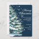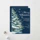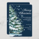 Une belle aquarelle, un arbre à feuillage persistant enneigé, glacé d'aqua et turquoise et entouré de flocons de neige volants couvre un côté de cette carte de vacances bleu nuit profonde. "Joyeux Noël" dans un script élégant surplombe la carte de voeux, suivi d'un accueil saisonnier personnalisé. "Meilleurs voeux de" et votre nom de famille personnalisé et date dans une jolie police serif. Tout le texte est en blanc pur pour correspondre à la neige sur les branches du joli aquarelle. L'arbre, en pleine gloire, centre la carte qui est aussi dans le bleu profond de minuit. Chaque ligne et mot peut être édité pour votre salutation de vacances personnelle.