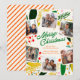 Partagez la joie de la saison avec cette carte de vœux de Noël moderne lumineuse et joyeuse, présentant une conception de couronne botanique dessinée à la main colorée, des rayures ludiques et un collage de vos photos de famille préférées. Personnalisez avec vos noms et message sincère pour un vœu de vacances unique. Parfait pour envoyer des vœux de Noël, capturer des souvenirs de famille et ajouter une touche de couleur à la saison de Noël !