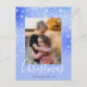 Cette carte postale moderne simple de Noël comporte des flocons de neige sur un arrière - plan d'hiver violet. Joyeux Noël est écrit dans une belle écriture manuscrite. Personnalisez cette carte postale de Noël avec votre photo et votre nom de famille.