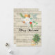 Vieux Carte de voeux élégante avec papier de notes musicales, fleurs et verdure d'hiver, arbre de Noël et cadeaux avec la mention "Joyeux Noël" dans les couleurs beige, vert, rouge, blanc et noir.