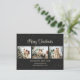 Elégante photo noire personnalisée Joyeuses cartes de Noël avec un collage photo et la chute de neige sur un arrière - plan noir. Personnalisez facilement cette carte noire de Noël avec vos images préférées, un nom de famille et un texte.