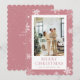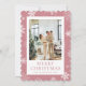 Carte de Noël joyeux rose mignonne avec des flocons de neige. Personnalisez facilement cette carte de vacances avec votre photo et votre texte.
